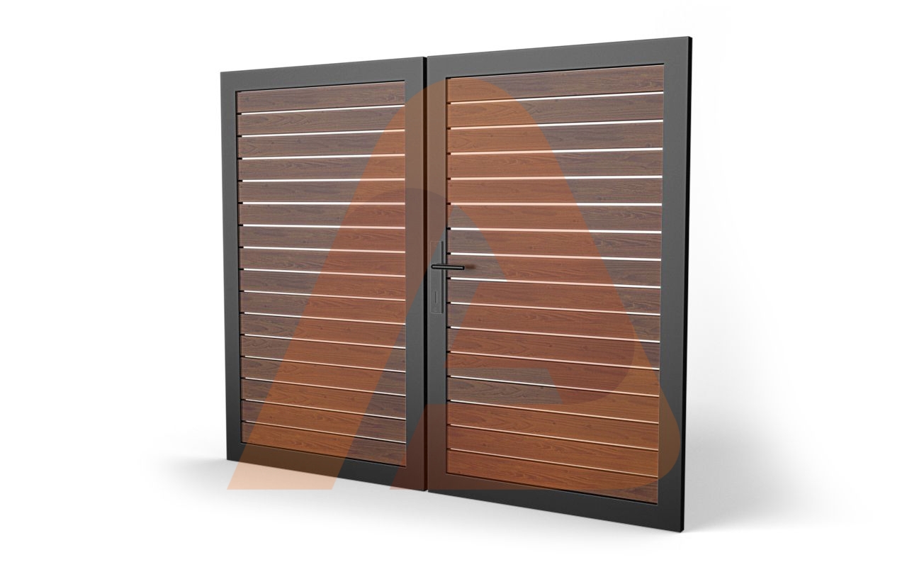 Unlike traditional wood or steel gates, the HD Double Gate ALU40 6.3 Woodgrain Slat Contractor Line 12×6 Horizontal offers a balanced blend of lightweight structure and structural integrity. Every detail — from the frame thickness to the powder-coated finish — is engineered to handle heavy use and extreme weather while maintaining a sleek, modern aesthetic.
